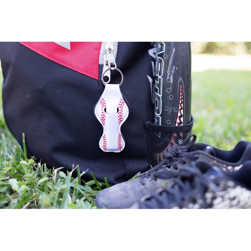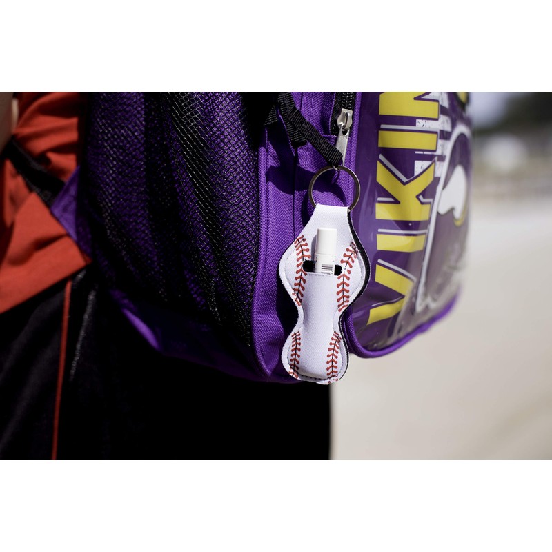 - Made of thick neoprene, Baseball Chapstick Holders Hold a Standard Tube of Lip Balm or Eye Black Tube. White background features red printed ball stitches