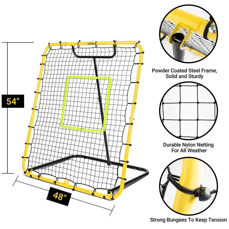 - ⚾【IMPROVE REACT SPEED & ACCURACY】This versatile rebounder net comes with a yellow target zone, which improves the reaction speed of catching and the accuracy of pitching, helps players to build up their muscle memory, and it is the best aid for pitching, fielding, and catching.