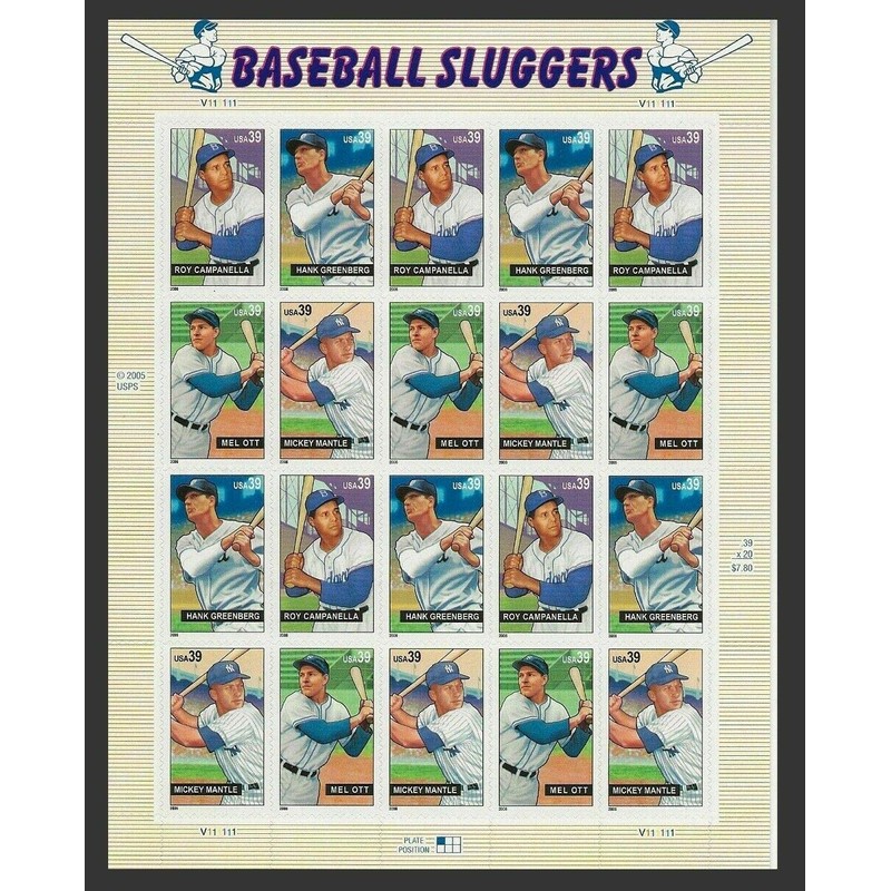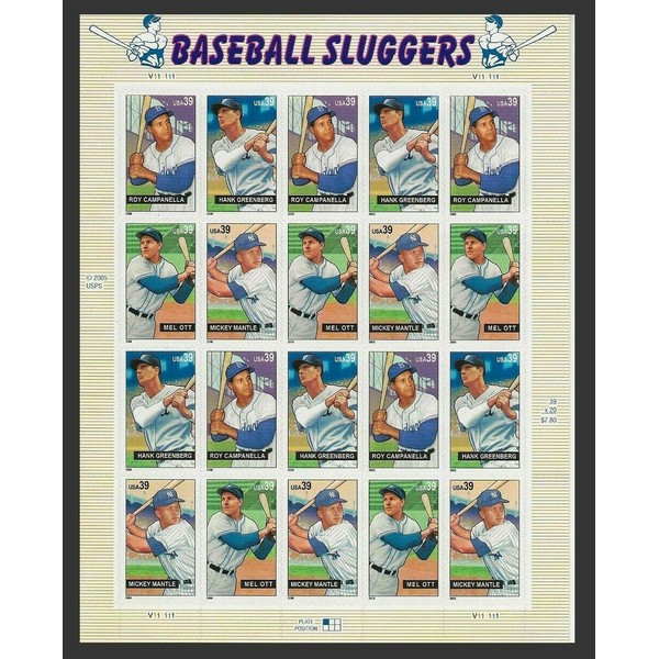 - Baseball Sluggers Sheet of Twenty 39 Cent Stamps Scott 4080-83