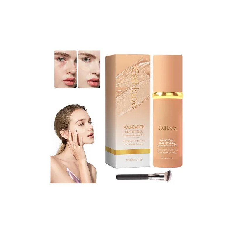 Base 4 en 1: la base proporciona una cobertura natural y total que oculta eficazmente las imperfecciones y, al mismo tiempo, proporciona protección solar para evitar el daño solar. Mejora el brillo natural de tu piel para una piel segura, clara y radiante.
