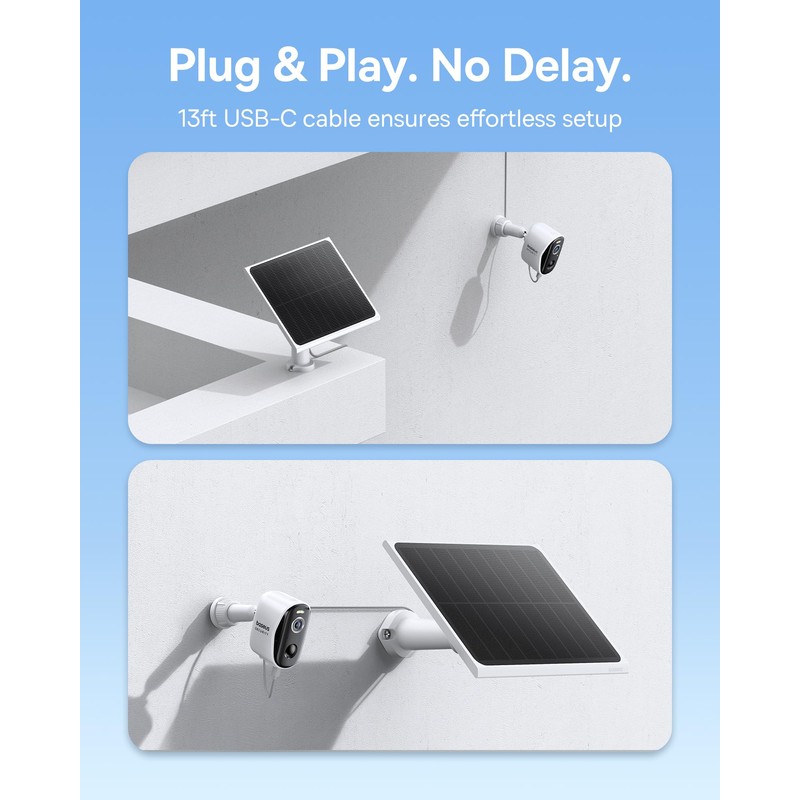 - 【Endless Solar Power】Just 30 minutes of sunlight powers your security camera all day! Baseus 3W solar panel charger features advanced 5-layer construction, absorbing more sun power and increasing energy conversion by 8%. Say goodbye to battery swaps and power outages—stay reliably protected 24/7.