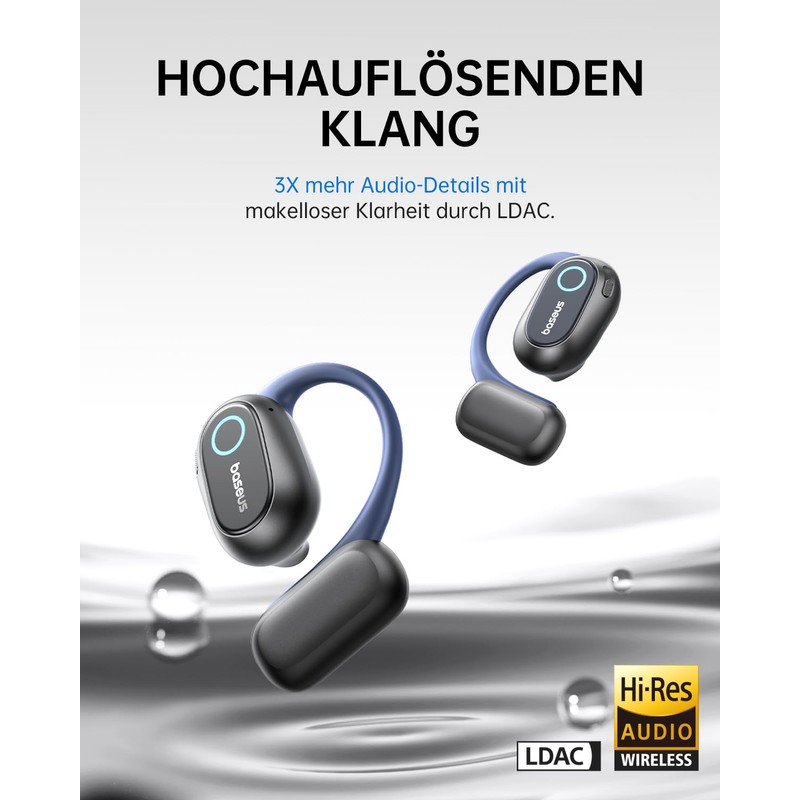 - Hi-Res Detailed Sound These open-ear earphones allow you to immerse yourself in three times as many audio details thanks to the Hi-Res sound provided by LDAC technology. Enjoy powerful bass and crystal clear sound, enhanced by 16mm dynamic drivers and exclusive bass enhancement algorithm from Baseus.