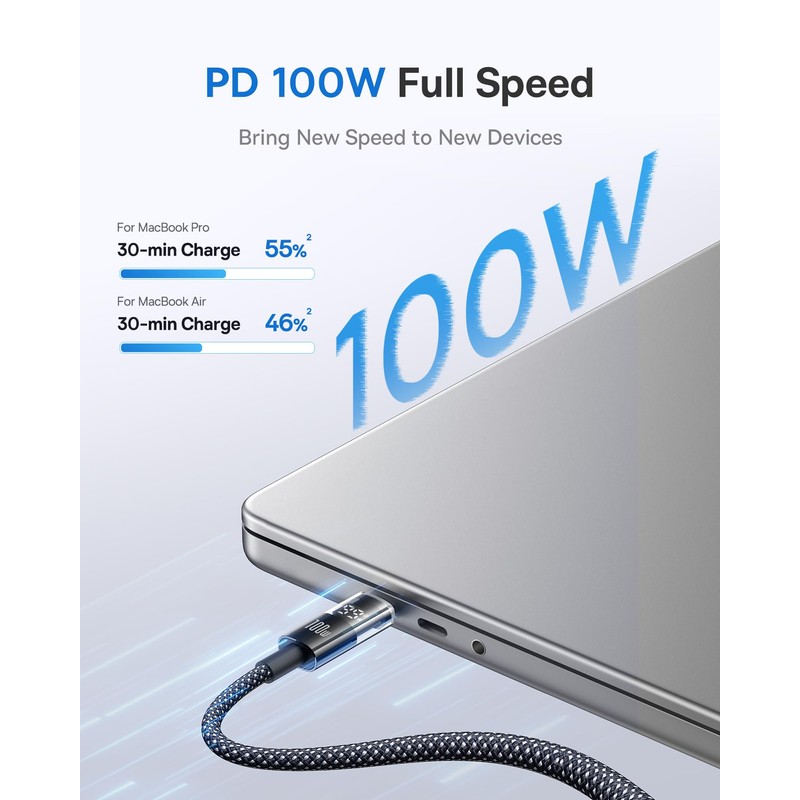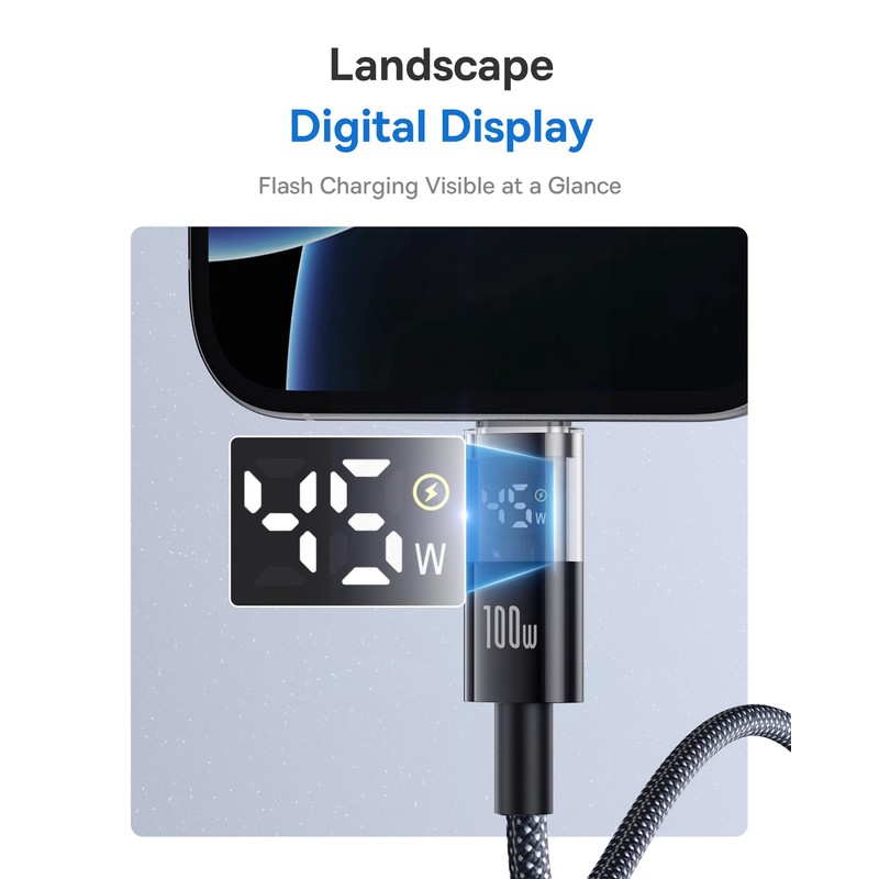 - LED Display Cable: Baseus USB-C to USB-C cable features a built-in E-Marker chip to support high power and current (20V/5A). The fast charger cord automatically identifies the voltage and current required by different electronic devices and displays the charging power on the LED module.
