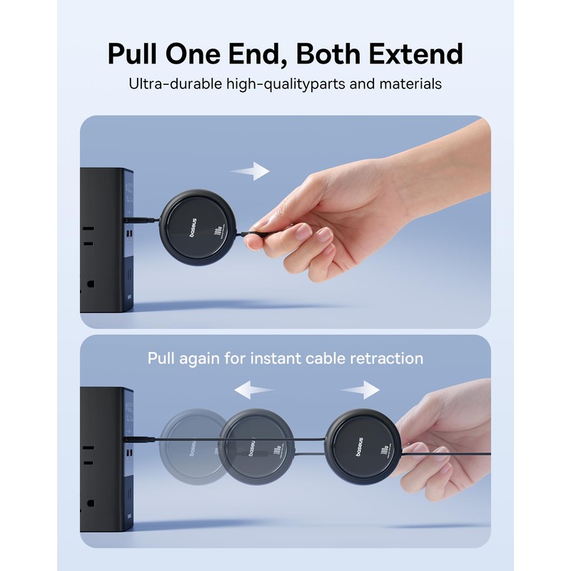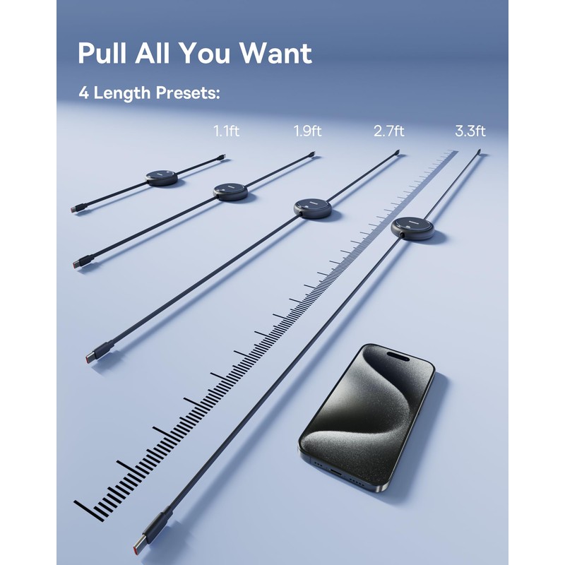 - Fully Retractable Cable: Say goodbye to tangled cables and a messy charging environment. Pull on the retractable USB C cable to retract and store for ease of storage.