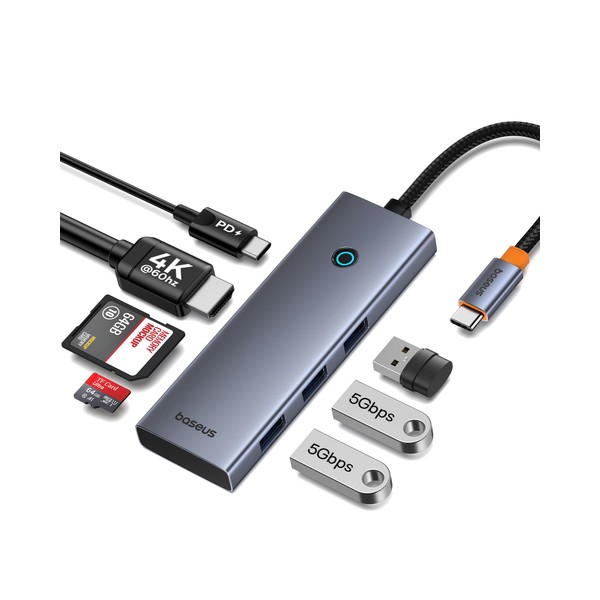 - Baseus USB-C Hub 7-IN-1 4K 60Hz HDMI Hub USB 3.0 5Gbps High Speed Transfer