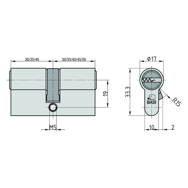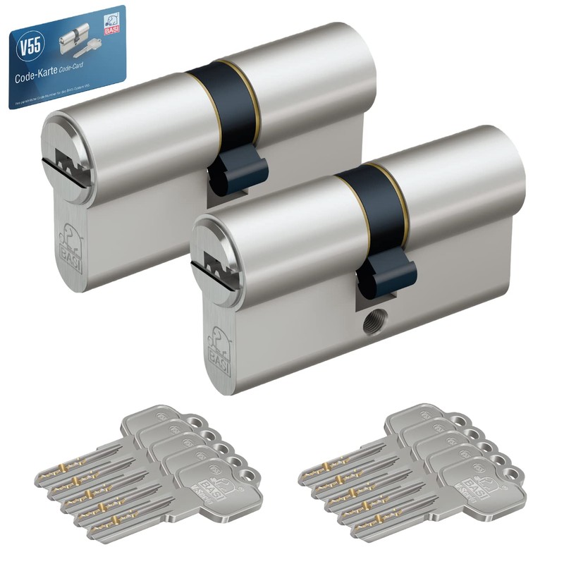 - Set of 2 profile cylinders in length 30/40 mm (without emergency and danger function) | simultaneous locking cylinders from the BASI V55 series | Only 1 key for several locks | Cylinder with picking protection and drilling protection | When purchasing the set, you will receive all cylinders supplied in one order (made from a prefabricated bearing identical locking. I ), Key closes each cylinder of this job. Even if you add several items or different lengths to your shopping cart