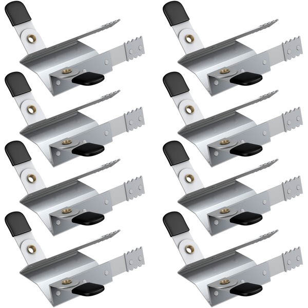 Pack of 8 roller clamps made of metal for mechanical backup roller blinds from back up/can push upwards for an optimum burglary protection for window. Onto the, shutter security Simply hangs between the guide rail and shutters and thereby prevents any slide from outside. The clamping system ensures ideal protection and security for your home.