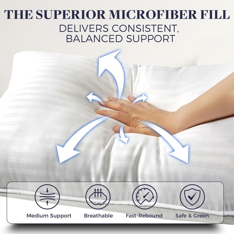 • SOFT YET SUPPORTIVE: Our bed pillows standard size set of 4 are filled with super soft microfiber that gently contours to your head and neck while maintaining optimal support for all-night comfort