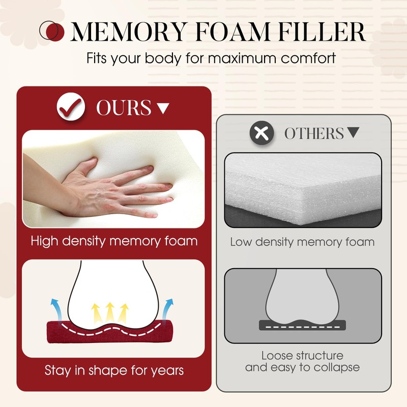 Basic Beyond Chair Cushions for Dining Chairs 6 Pack, Memory Foam Chair Cushion with Ties and Non Slip Backing, 16 x 16 inches Chair Pads for Dining Chairs(Red)