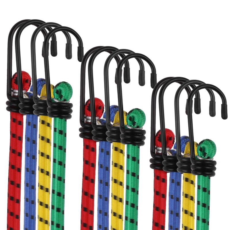 Basic Bungee Strap 12 Bungee Cords with Hooks, Elastic Straps UV-Resistant for Securing Gardening, Tent,Luggage