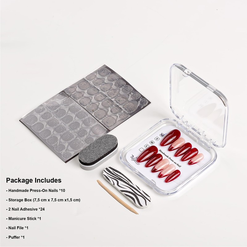- 𝐖𝐡𝐚𝐭 𝐜𝐨𝐦𝐞𝐬 𝐰𝐢𝐭𝐡 𝐲𝐨𝐮𝐫 𝐩𝐫𝐞𝐬𝐬 𝐨𝐧 𝐧𝐚𝐢𝐥 𝐤𝐢𝐭? 10 nails of your selected style and set , 24 adhesive tabs x 2, Mini nail file , Manicure wooden stick , Puffer, A Storage Box