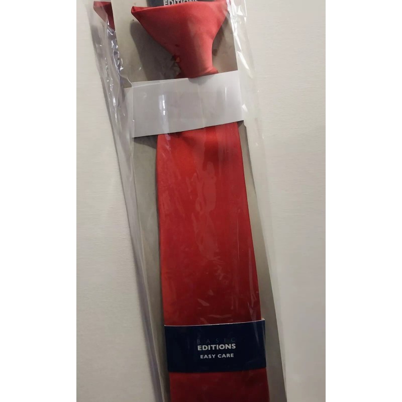 Basic Editions Easy Care Men's Solid Red Satin Tie Christmas Wedding Formal