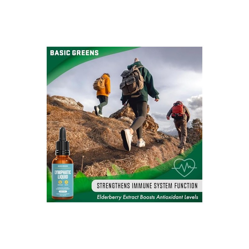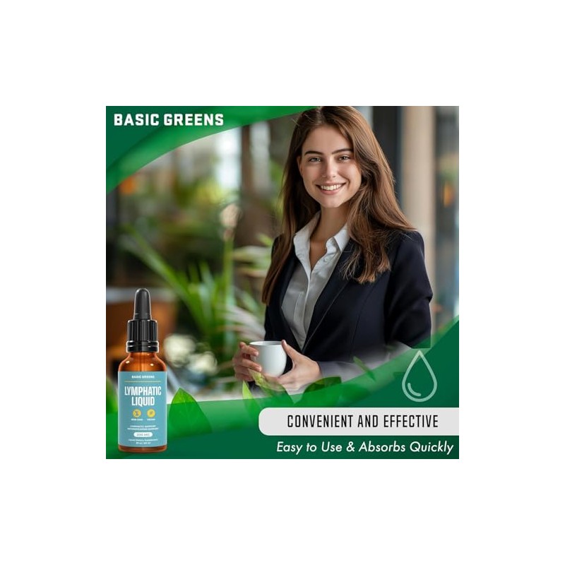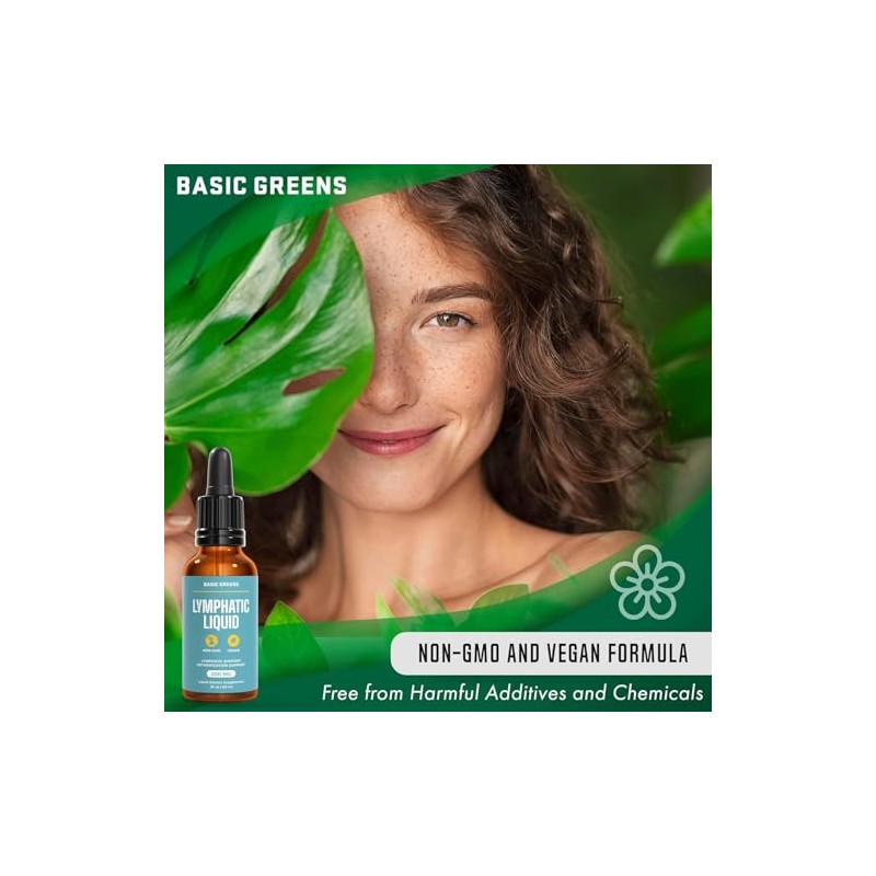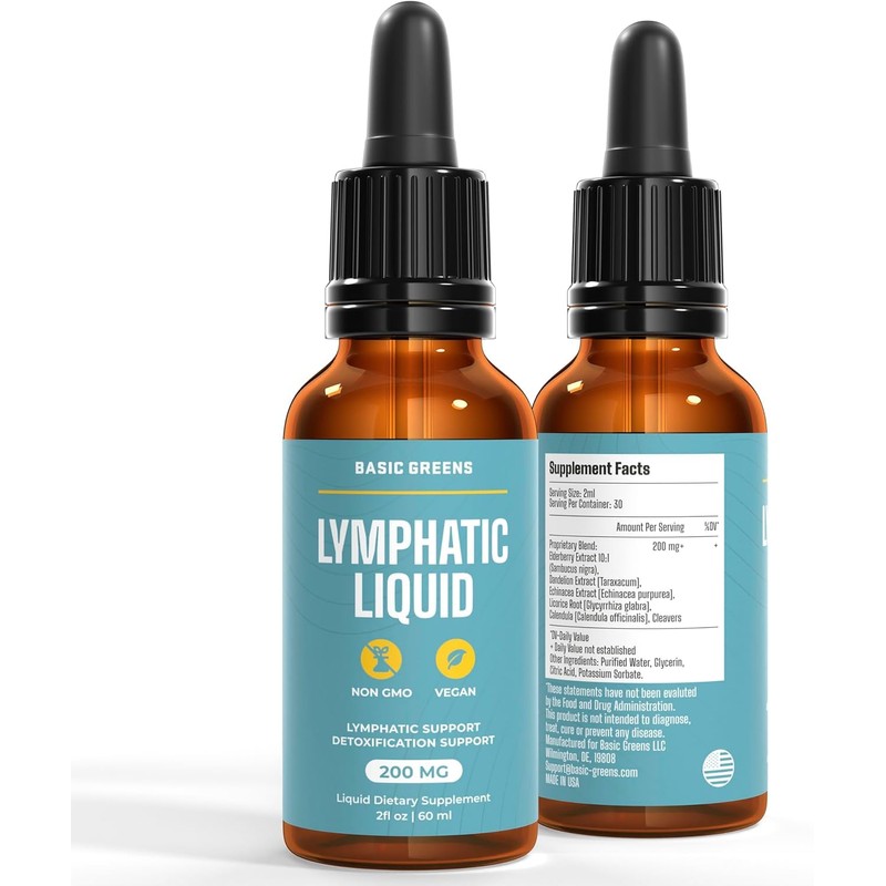 BASIC GREENS BASIC GREENS Lymphatic Support Liquid ?C Natural Immune Booster for Lymphatic Drainage, Fluid Balance, and Daily Cleanse, Easy - Absorb Liquid Formula for Wellness Support, 2 Fl Oz