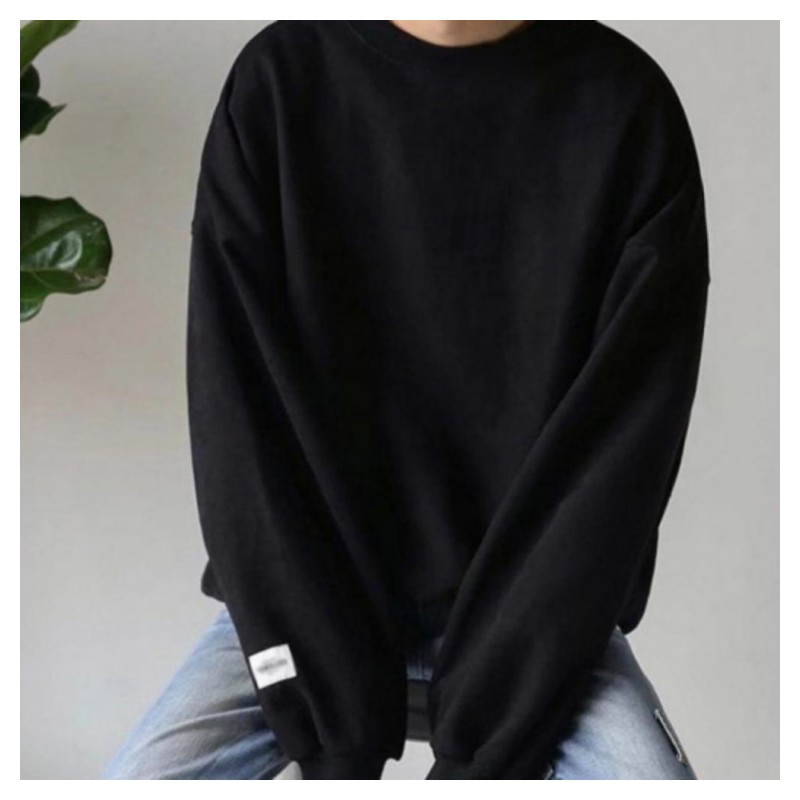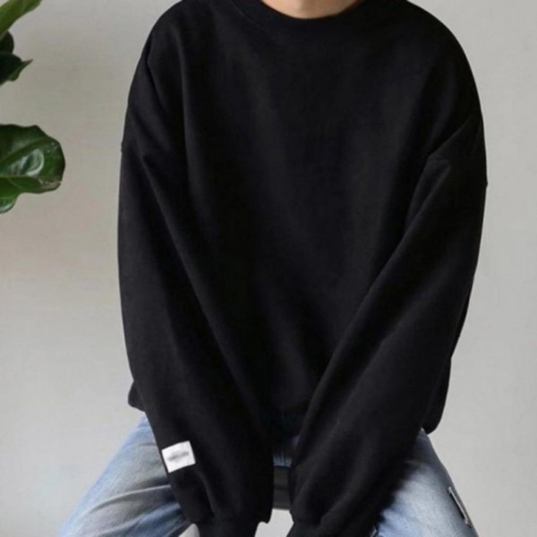 Basic Loose Fit Fleece-Lined Casual Sweatshirt Unisex Black/XL