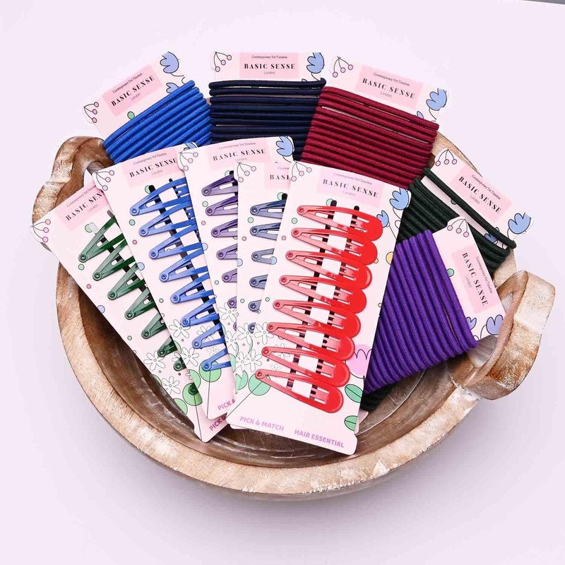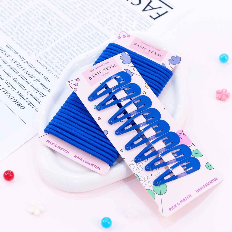 Basic Sense 38pcs School Hair Set: Snap Clips & Elastics for Girls – Durable, Comfy, Uniform Matching, Royal Blue