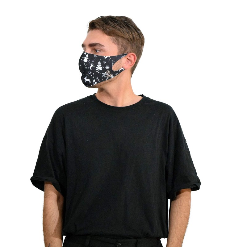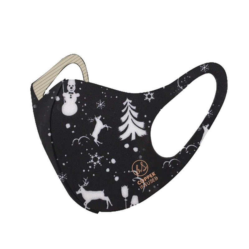 Basic Sense CHRISTMAS Copper Ion Infused Washable Reusable Face Coverings Masks Made In South Korea (Reindeer - Black)