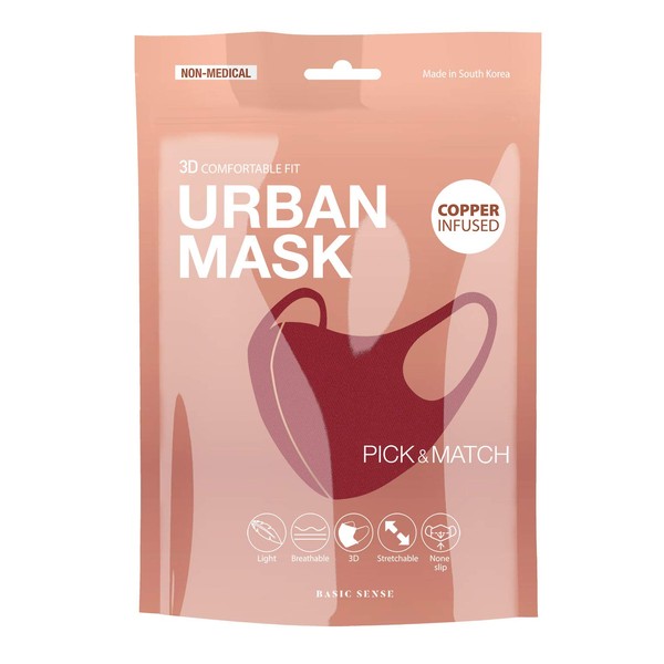 Basic Sense Copper Infused Washable Reusable plain Face Coverings Masks Made in South Korea (Red)