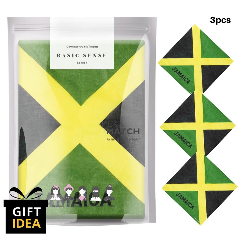 Basic Sense Jamaica Flag Bandana, Cotton Carnival Biker Bandanna, Headwear, 3PCS Combo