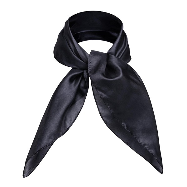 Basic Sense Plain 100% Genuine Mulberry Silk Small Square Scarf, 55 x 55cm (21.5 x 21.5 inches), Black