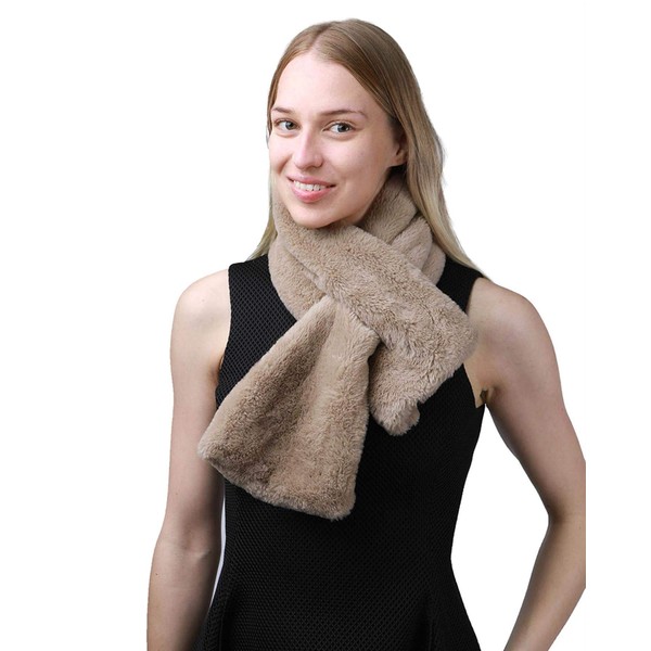 Basic Sense Super Soft Both Side Fluffy Faux Fur Warmer Scarf Wrap, Brown