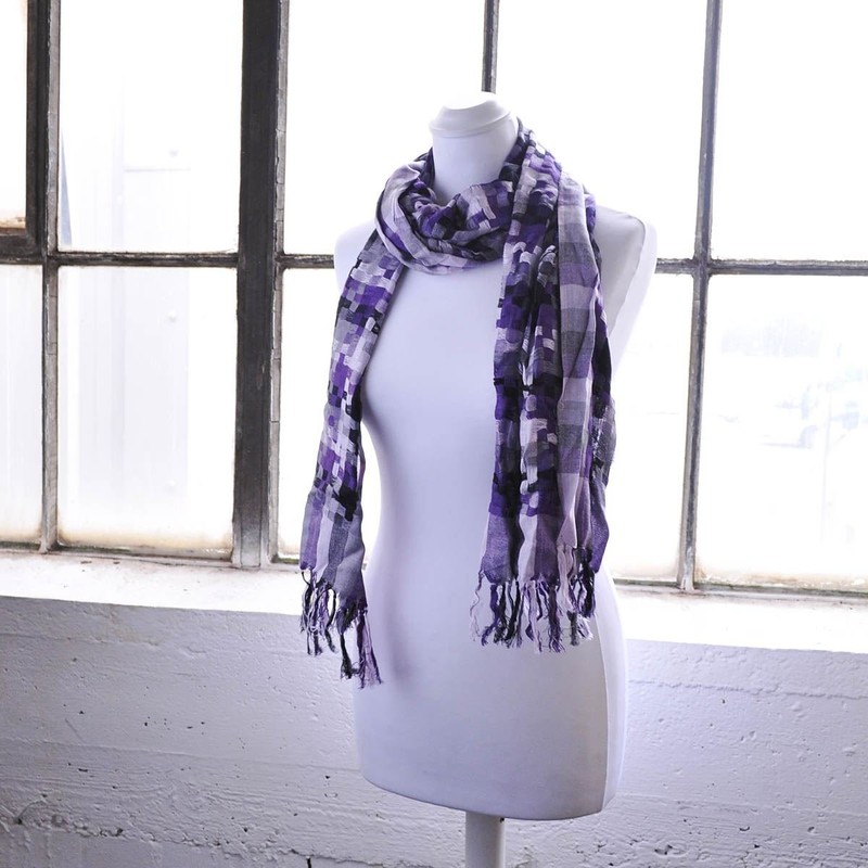 Basic Sense Woven Check Pattern, Neck Scarf, Shawl, Stole Wrap, Purple