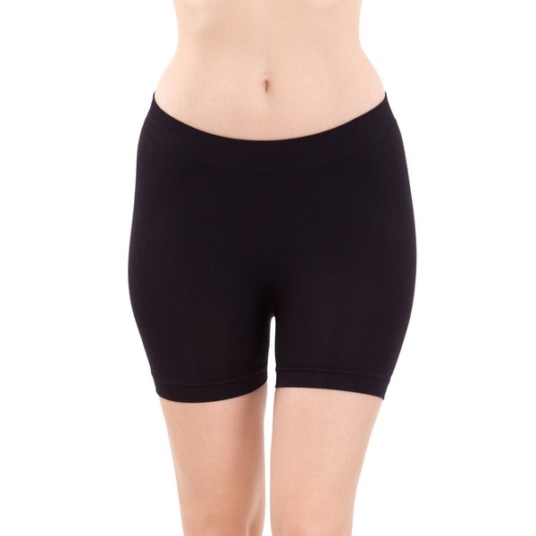 Basic Solid Biker Short Spandex Yoga Leggings (12 inch, Black), Free Size