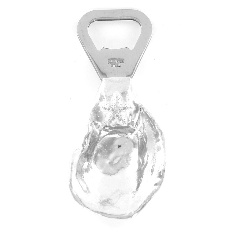 Basic Spirit Oyster Shell Pewter Bottle Cap Opener Coastal Shellfish Ocean Pearls