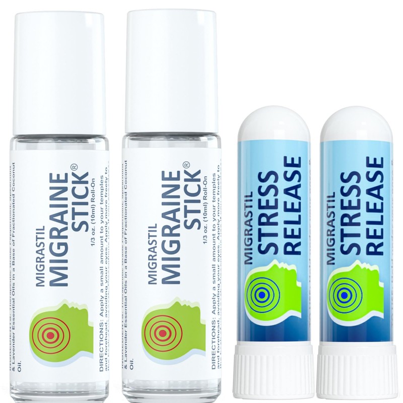 Basic Vigor Migrastil Stress Release Aromatherapy Inhaler 2-Pack and Two Migraine Sticks Bundle