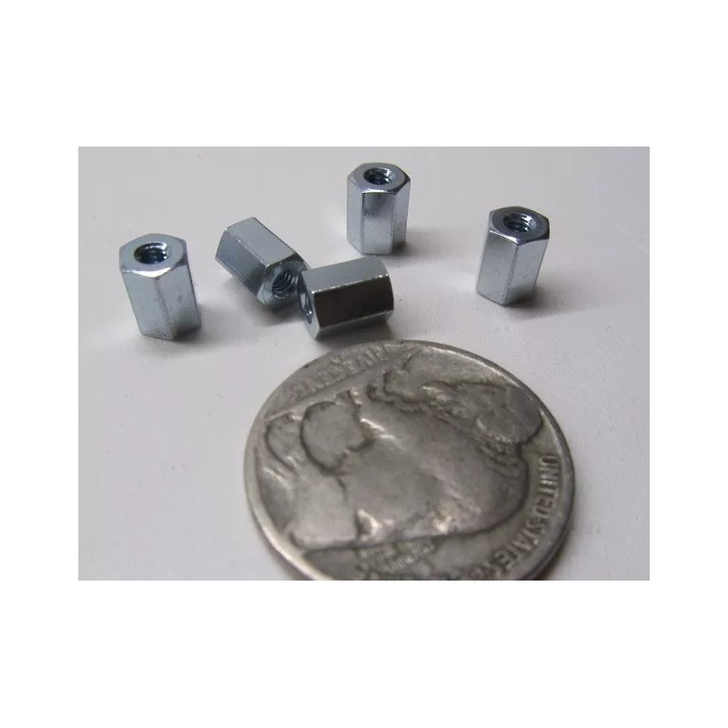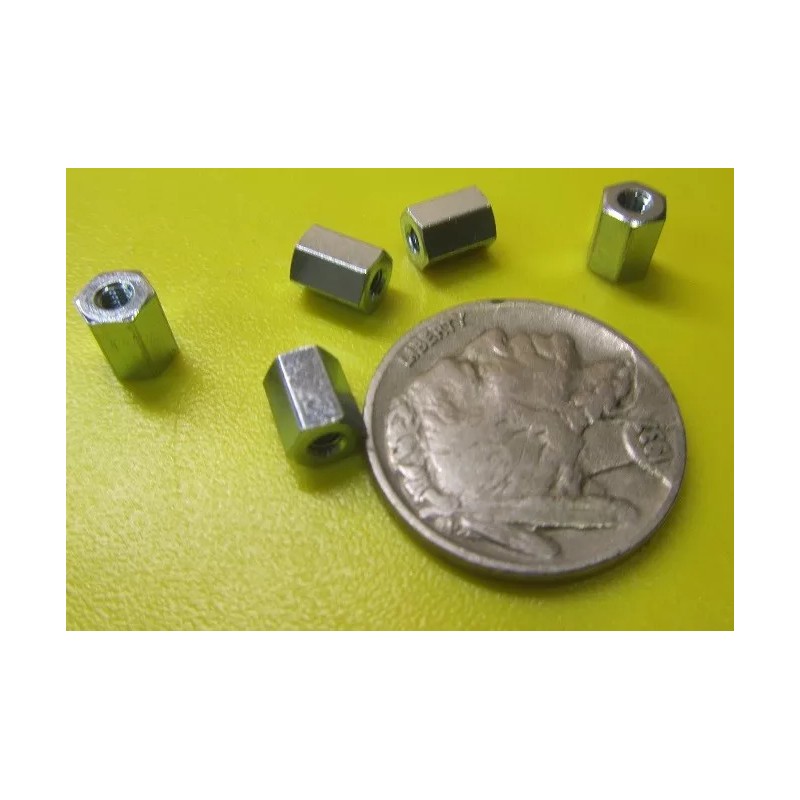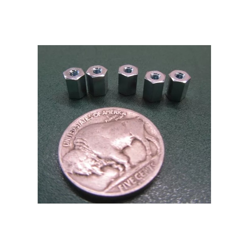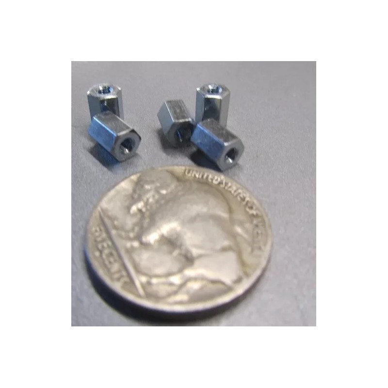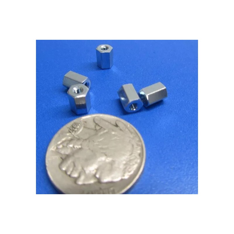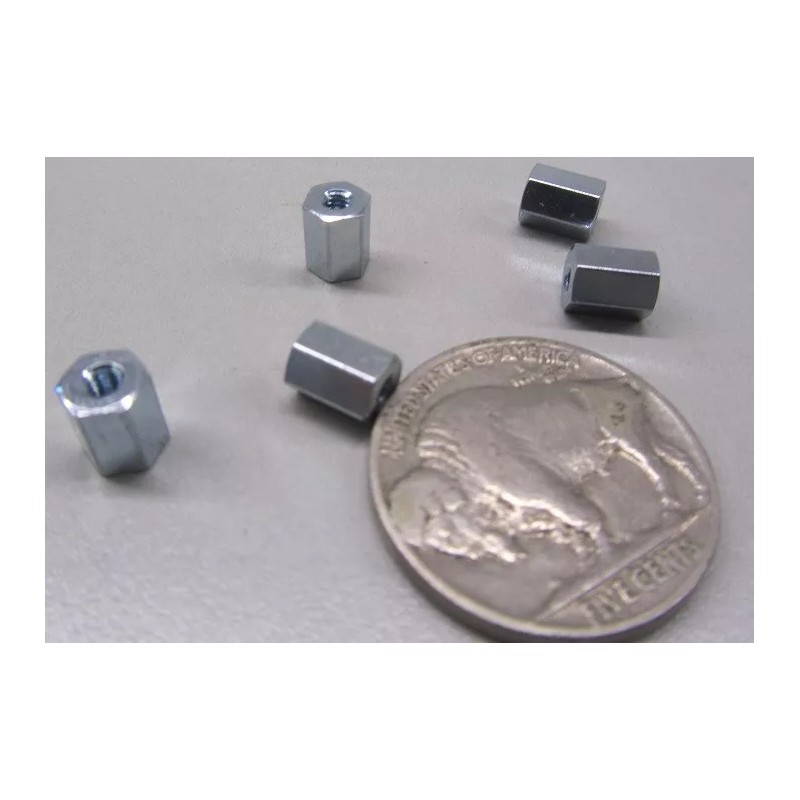 Zinc Plate Female Threaded Standoff, 3/16" Hex, 1/4" Length, 2-56 FT, 12 pcs