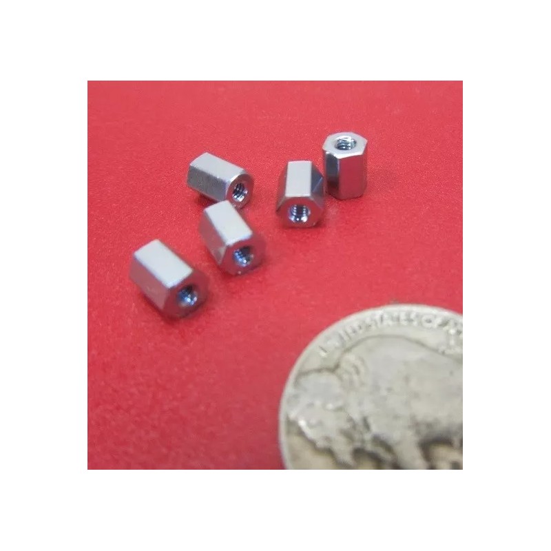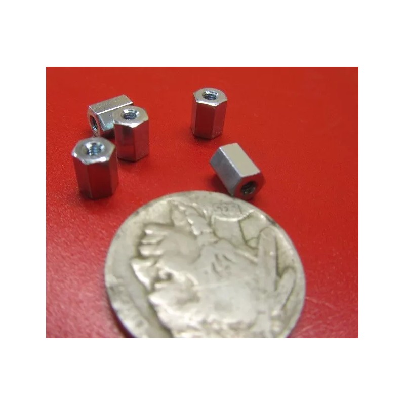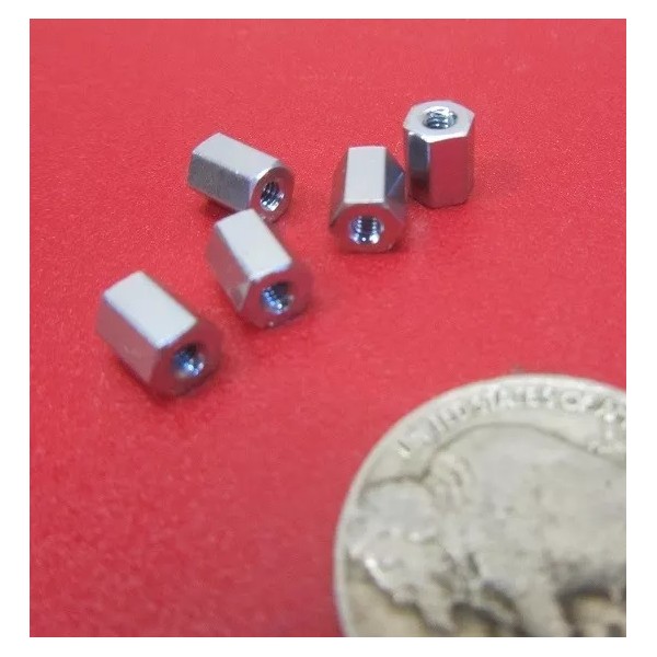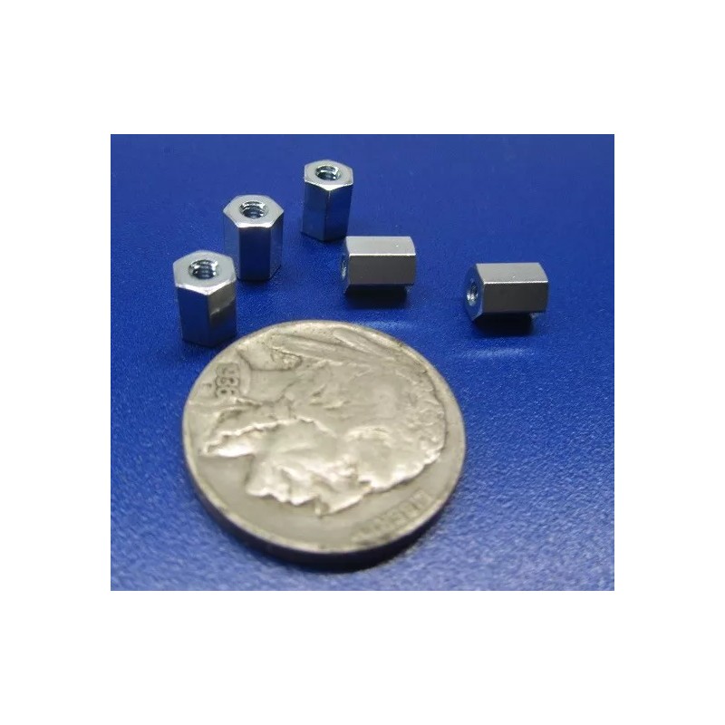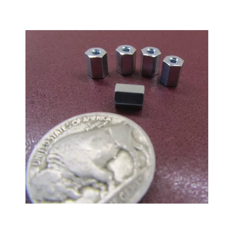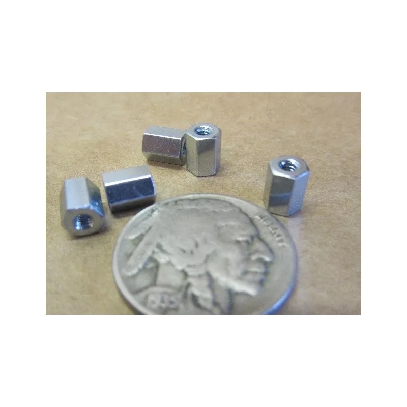 Zinc Plate Female Threaded Standoff, 3/16" Hex, 1/4" Length, 2-56 FT, 12 pcs