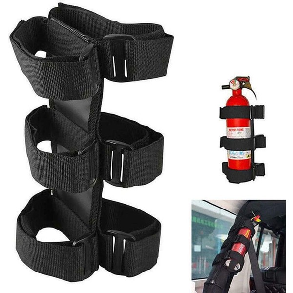 - ⭐Wide Application: The fire extinguisher strap is great to secure your fire extinguisher to the roll bar, deal for 1955 - 2019 Jeep Wrangler TJ/YJ/JK/CJ & Trucks/SUVs/ATVs. It also works great to mount a fire extinguisher in your living room, dining room and bedroom.