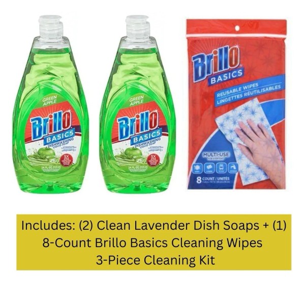 🧼 Brillo Basics Green Apple Dish Soap + Cleaning Wipes – 3-Piece Kit