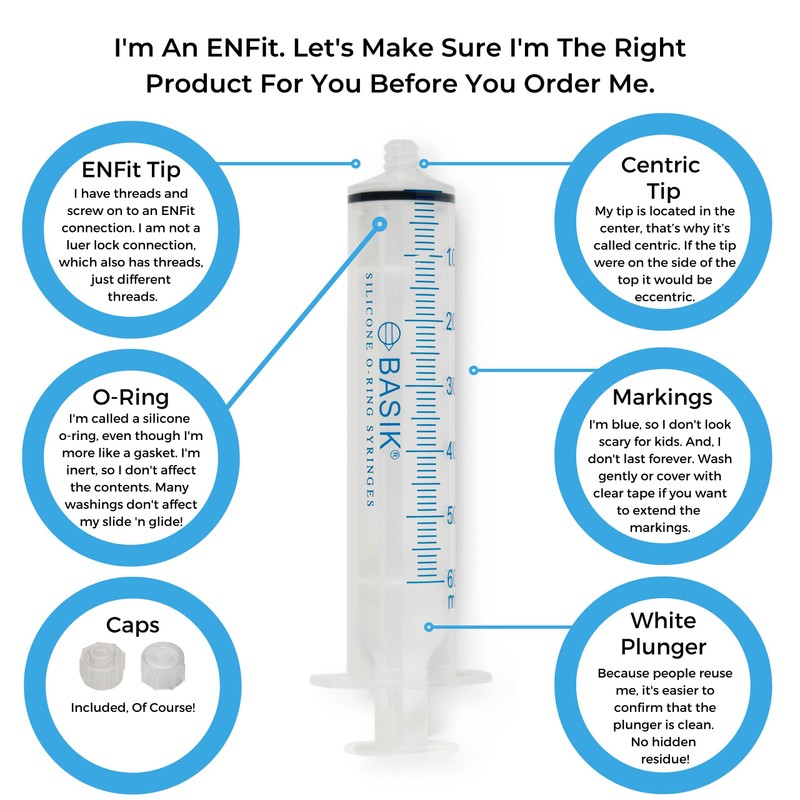 BASIK 60cc Compatible With ENFIT Connections Silicone O Ring Reusable Syringe, 2 Pack