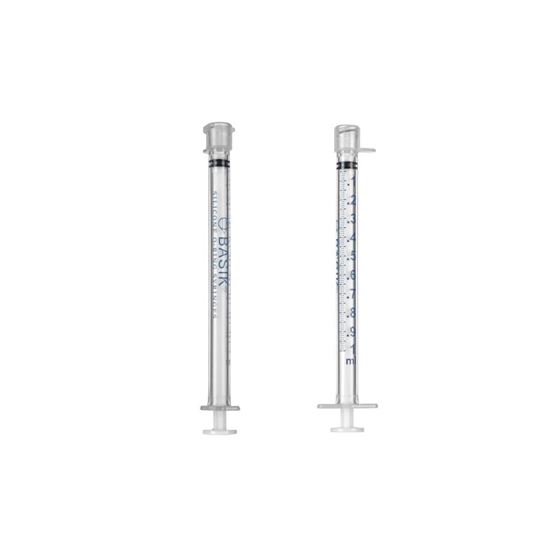 Precision meets reliability with these BASIK Silicone O-Ring Syringes. Each syringe features a 1mL capacity with an EnFit Low Dose Tip for accurate measurement and dispensing. The set includes 24 syringes with protective caps, making them ideal for multiple uses. The clear barrel markings allow for precise volume control, while the silicone O-ring ensures smooth plunger movement and consistent performance. These reusable syringes are designed with durability in mind, featuring high-quality materials that maintain their integrity through repeated use. The EnFit Low Dose Tip provides secure connections and precise delivery, while the included caps help maintain cleanliness between uses. Perfect for accurate measuring and dispensing needs, these syringes combine functionality with reliability in a professional-grade design.