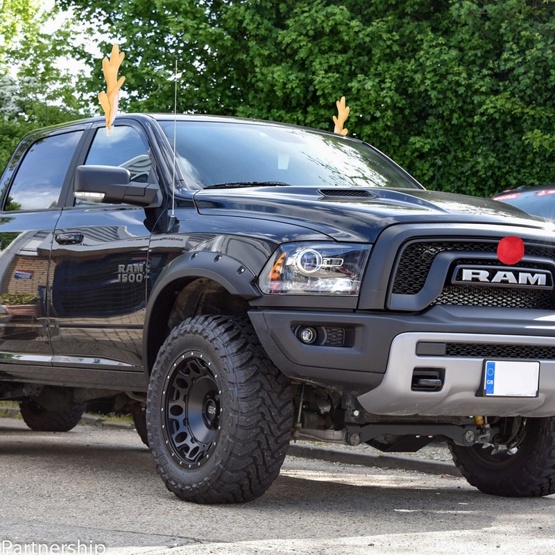 - Christmas Antlers Kit: This decoration vehicle accessory comes with 2 reindeer antlers with ears (roof), 1 red nose (for grilling)