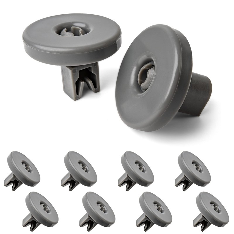 - Box contents: pack of 8 basket rollers for many dishwashers, made of plastic, in grey, suitable for many large appliances brands and models.