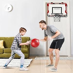 Basketball Hoop Indoor, Mini Basketball Hoop with 4 Balls & Electronic Scoreboard, Basketball Game Toys - Style: Red- With Scoreboard