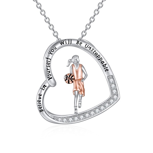 Basketball Necklaces 925 Sterling Silver Heart Basketball Pendant Necklace Inspirational Basketball Jewelry Gifts for Women Girls Basketball Player Sports Lovers