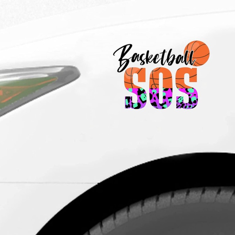Basketball Sos Sticker, Leopard Print Basketball Vinly Decal for Cars Laptops, Windows, Walls, Fridge, Toilet and More - Sport Theme Stickers 11in