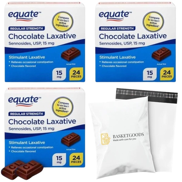 BASKETGOODS Chocolate Laxatives- Senna Laxative Chocolate 24 ct, 15 mg (3 Pack), Set with Basket Goods Store