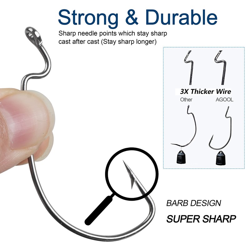 - 🐟SHARP: Bass Hooks are with chemically sharpened needle points, strong and durable. With special barb hooks design, allows deeper penetration and less mortality rate.The barb was designed to lock fish retreat and let the fish have nowhere to go
