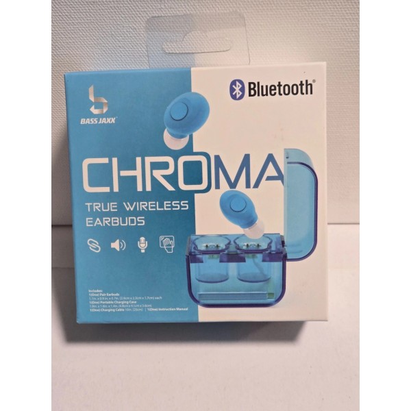 bass jaxx BlueTooth Chroma Wireless EarBuds--Blue--Brand New
