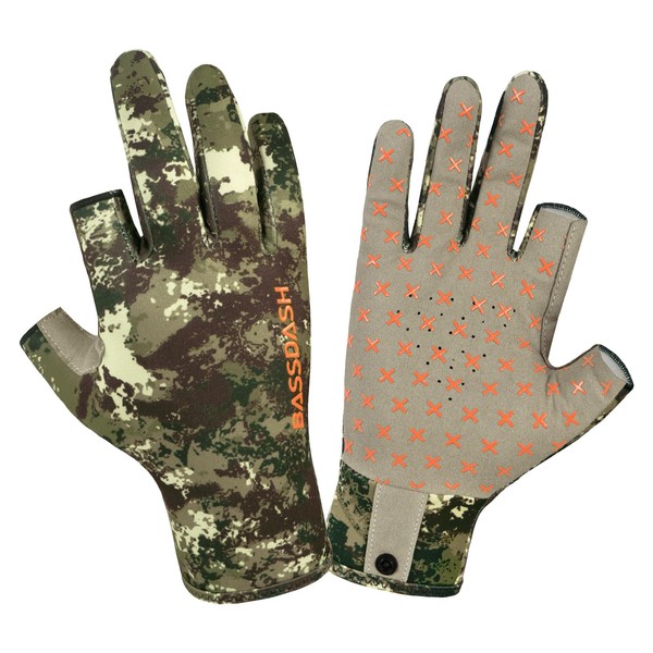 BASSDASH Unisex Fingerless Fleece Liner Camo Hunting Gloves for Cold Weather UPF 50+ Lightweight Fishing Photography HG06