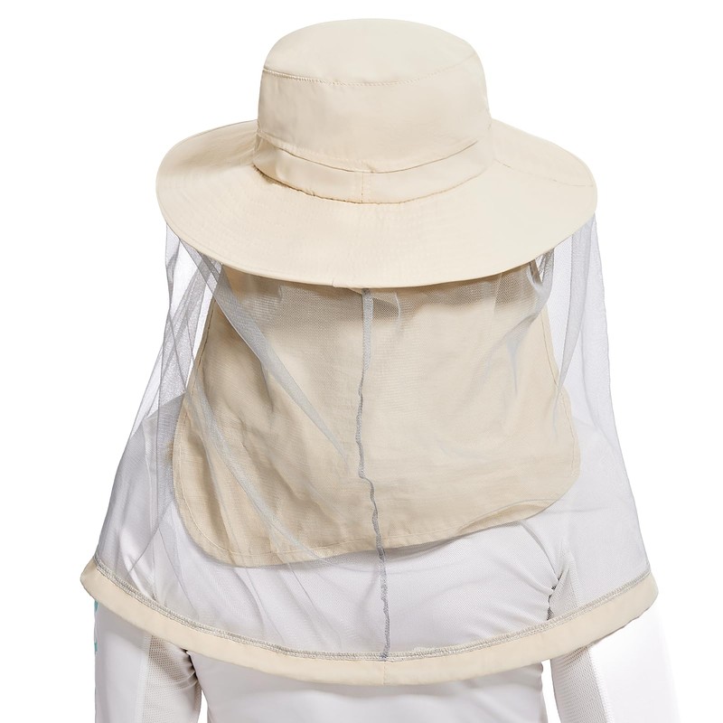 BASSDASH UPF 50+ Mosquito Net Hat with Stowable Neck Flap for Men Women Outdoor Fishing Hiking Camping Gardening FH17 Beige