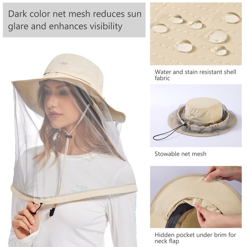 - Features a 14.6in long mosquito net for face and neck protection against bugs, and the dark mesh reduces glare and enhances visibility. The net is stowable - roll it up and fold it on the brim