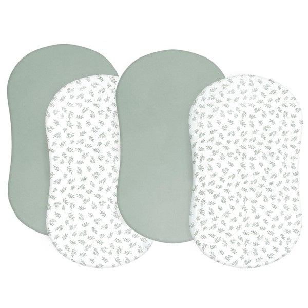 Bassinet Fitted Sheet(33" x 20"), 4 Pack for Most Bedside Sleeper Bassinet, Bassinet Sheets, Breathable & Soft Polyester, Green Leaf