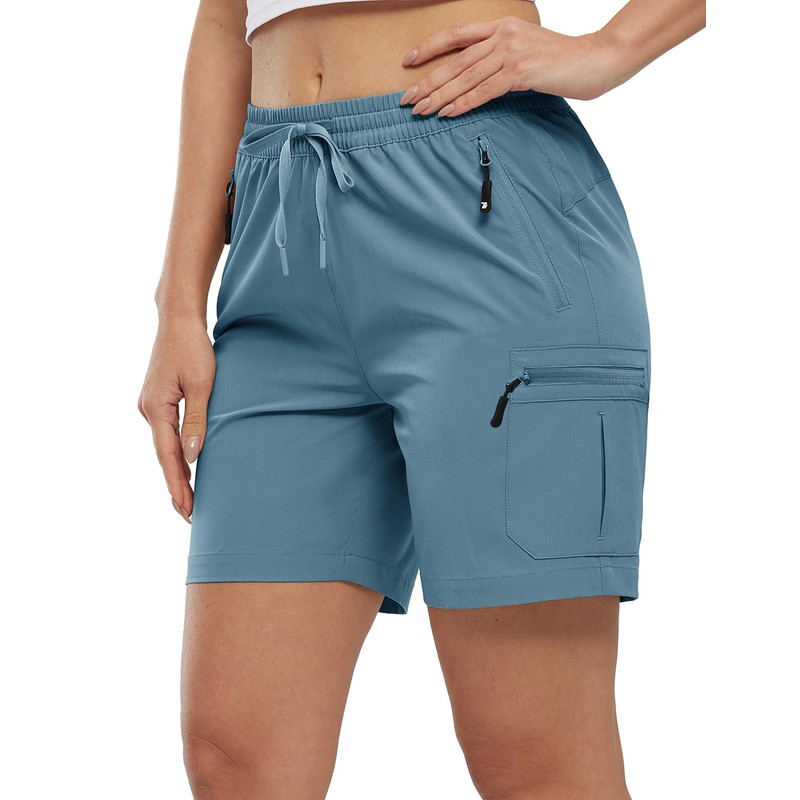 BASUDAM Women's Athletic Shorts Quick Dry Cargo Lightweight Zipper Pockets Summer Outdoor Hiking Running Light Blue XS