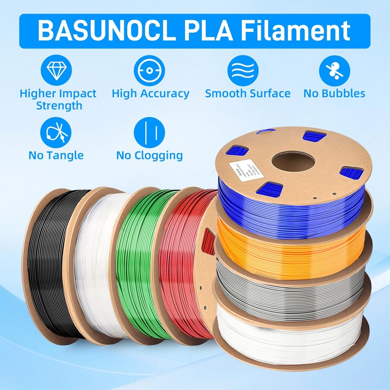 - Multicolor PLA Basic Filament Bundle: 2kg in total, 0.25kg per spool, pack of 8 spools: black, white, red, blue, gray, transparent, yellow, green. Improved based on ordinary PLA, PLA Basic filament not only retains the characteristics of PLA, but also has better fluidity and fast printing performance with special materials added, which makes it an ideal choice of cost-effective fast printing filament