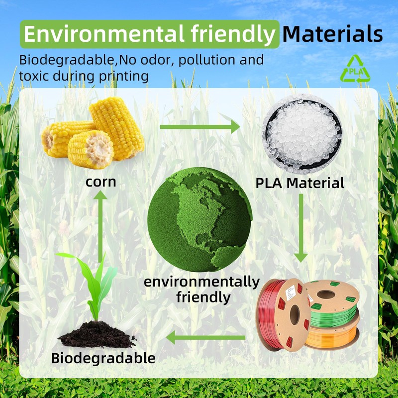 - Easy To Print: No bubbles, less stringing, high successful printing rate. Low Odor. No warping, low shrinkage, no deformation, no cracking. High printing precision and good molding effect. Made with starch raw materials derived from renewable plant resources.Widely used in cultural creativity, animation industry, film and television props and other fields