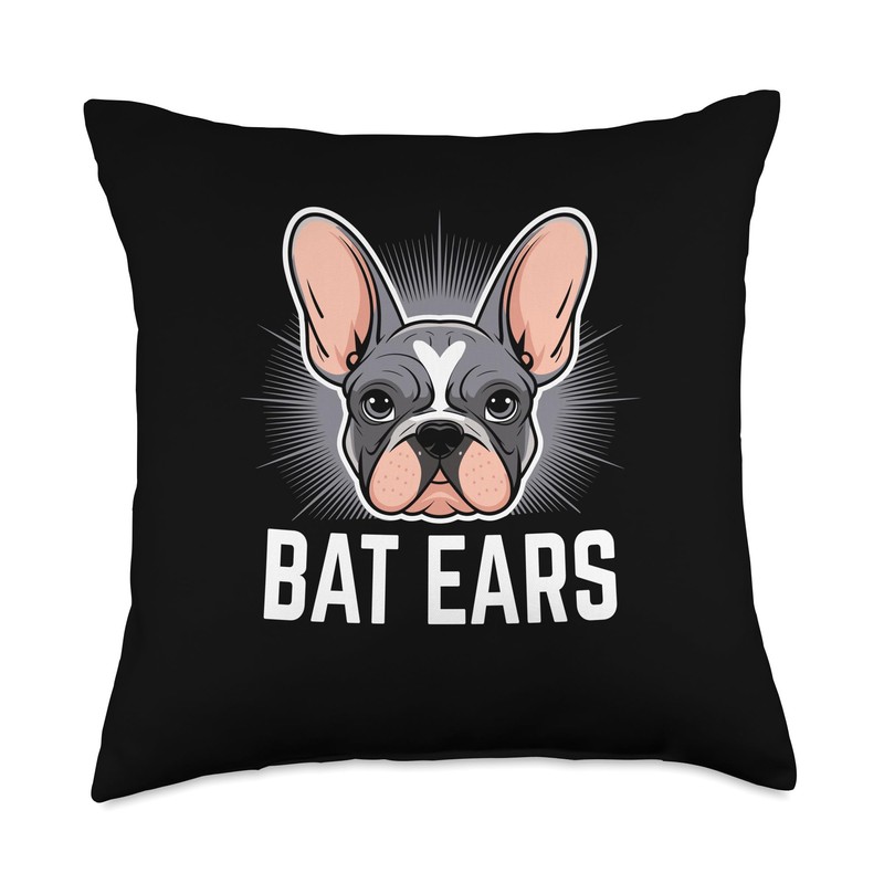 Bat Ears Dog Breed Rescue Pet Paws French Bulldog Throw Pillow